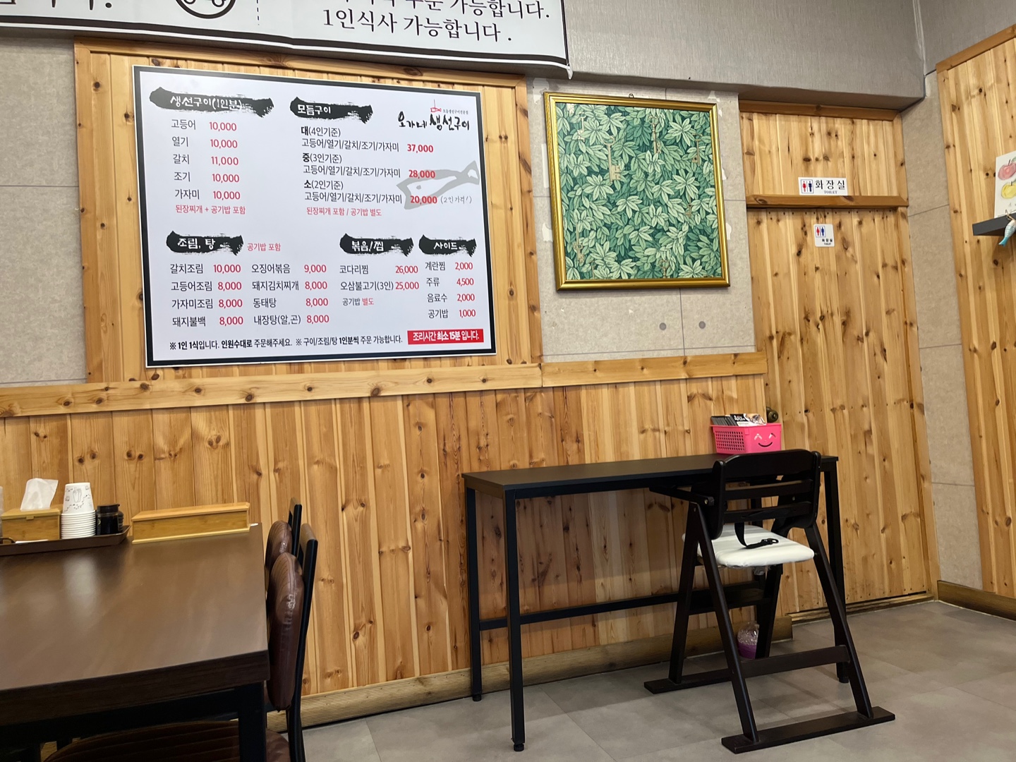 혼밥러들도 1인 식사가 가능하다. 출입문 안쪽에 좀 더 아담하게 식사 할 수 있는 공간에서 먹었는데 홀 중앙에는 식사하는 분들이 여럿 계서서 찍지 않았다.