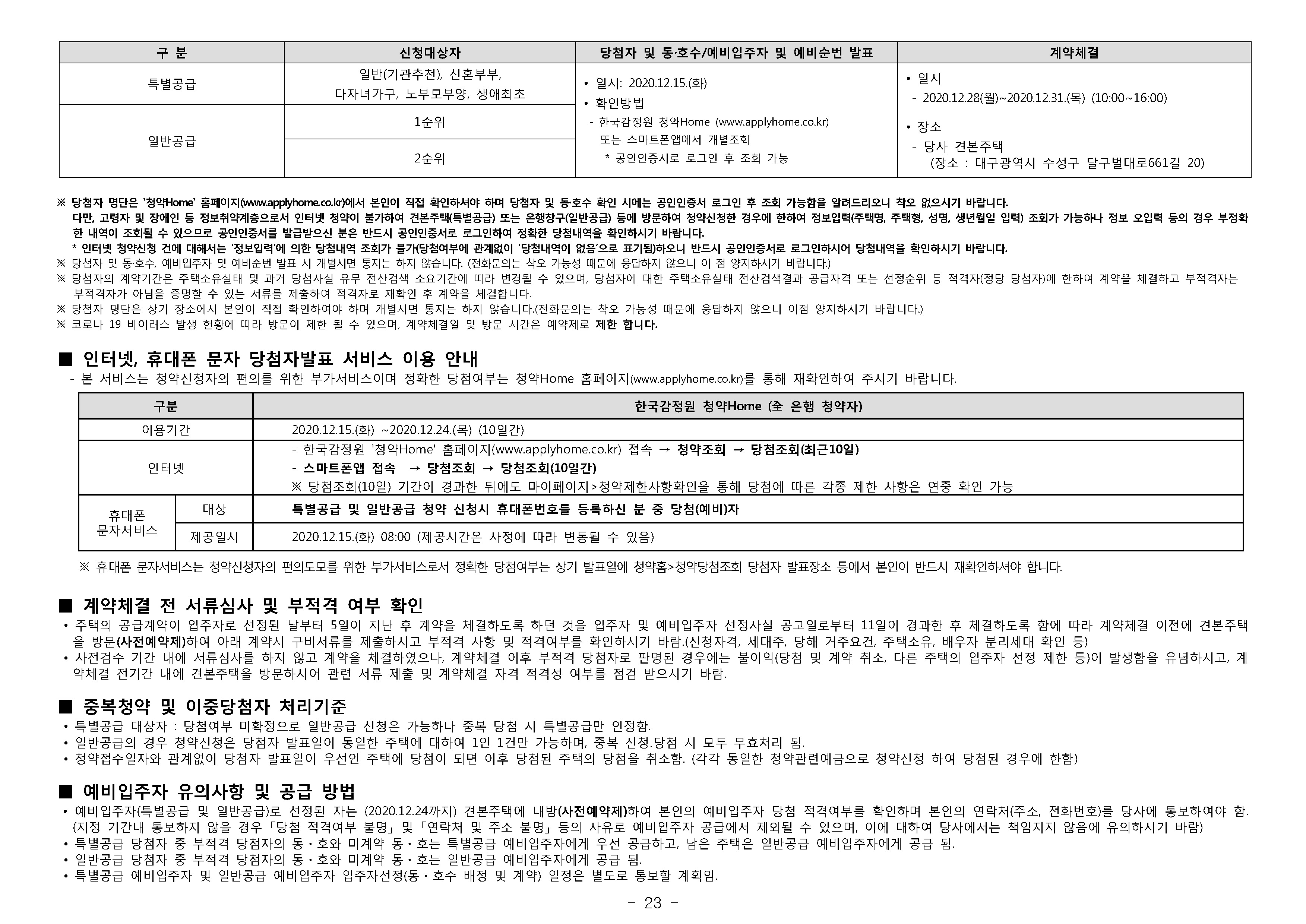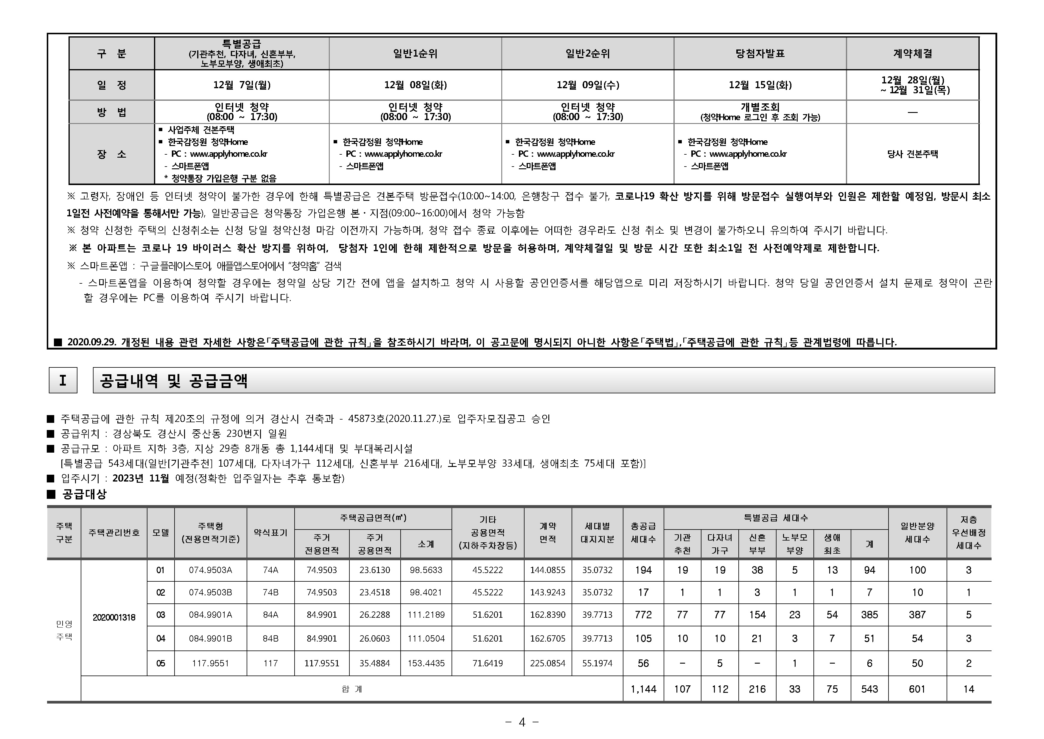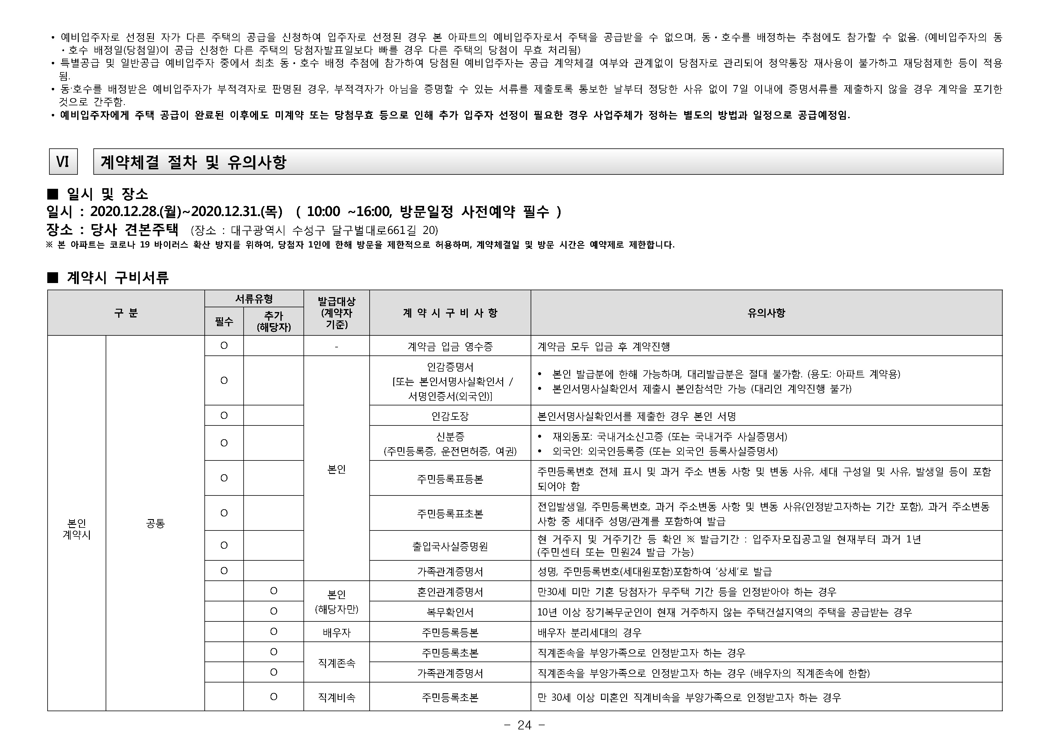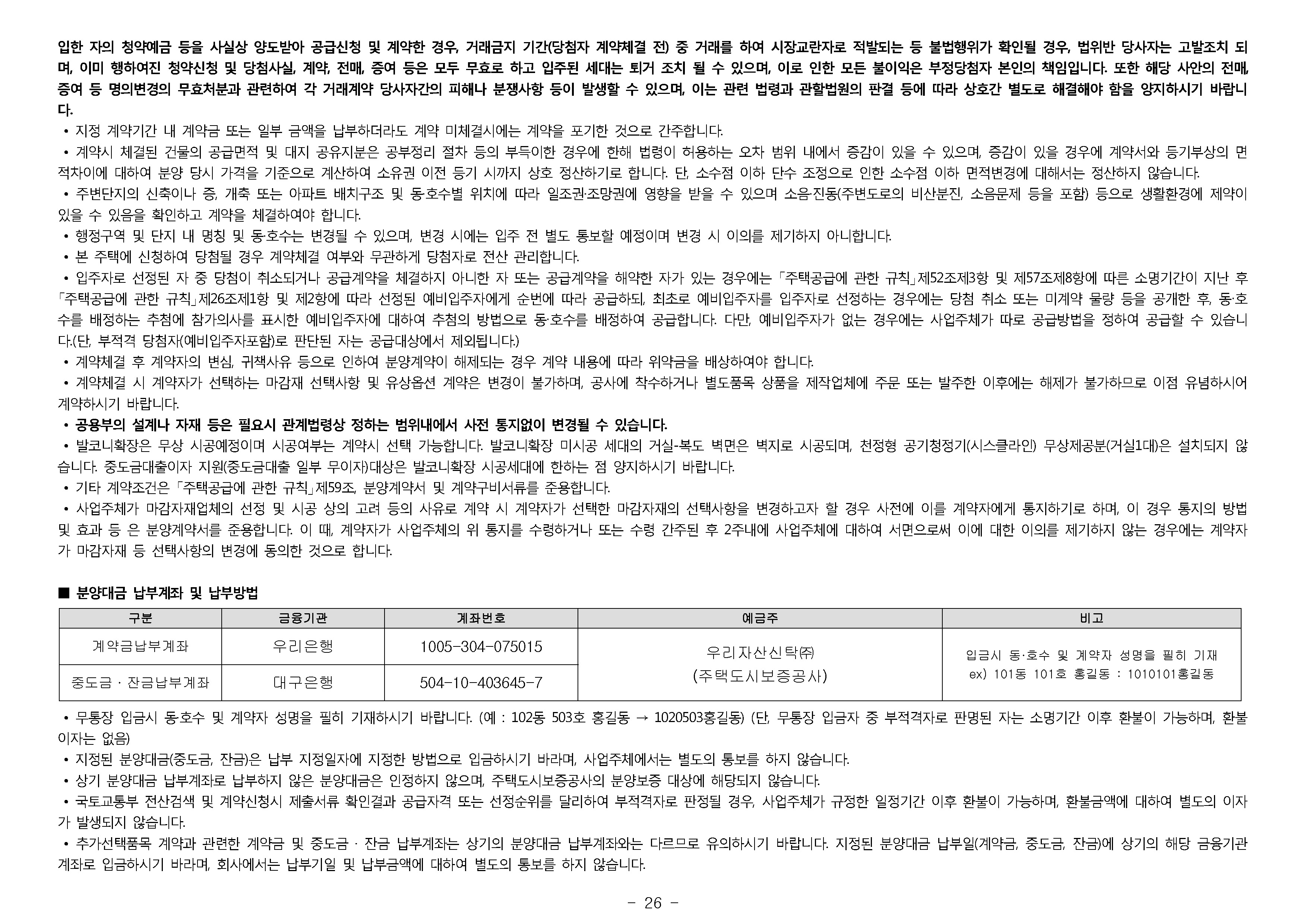 경상북도 및 경산시 거주고객기준 청약 예치금 안내