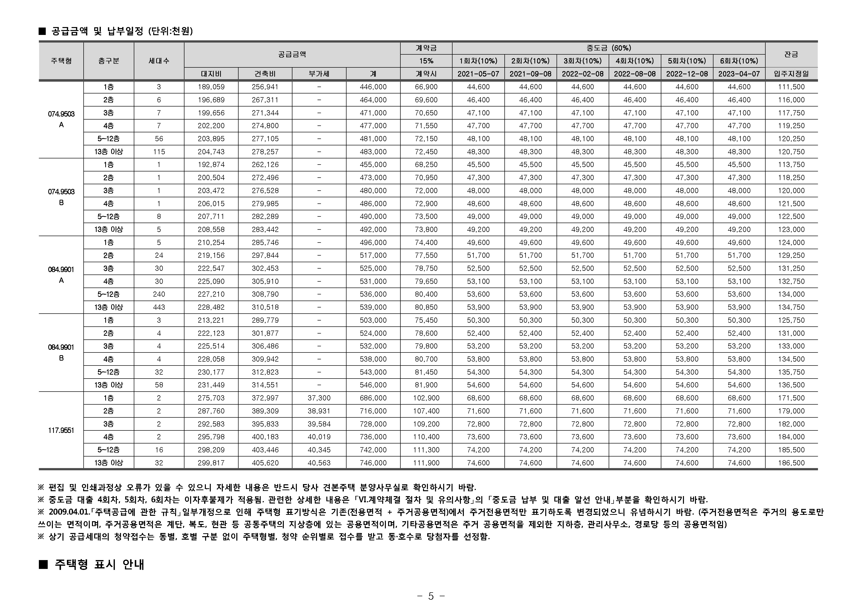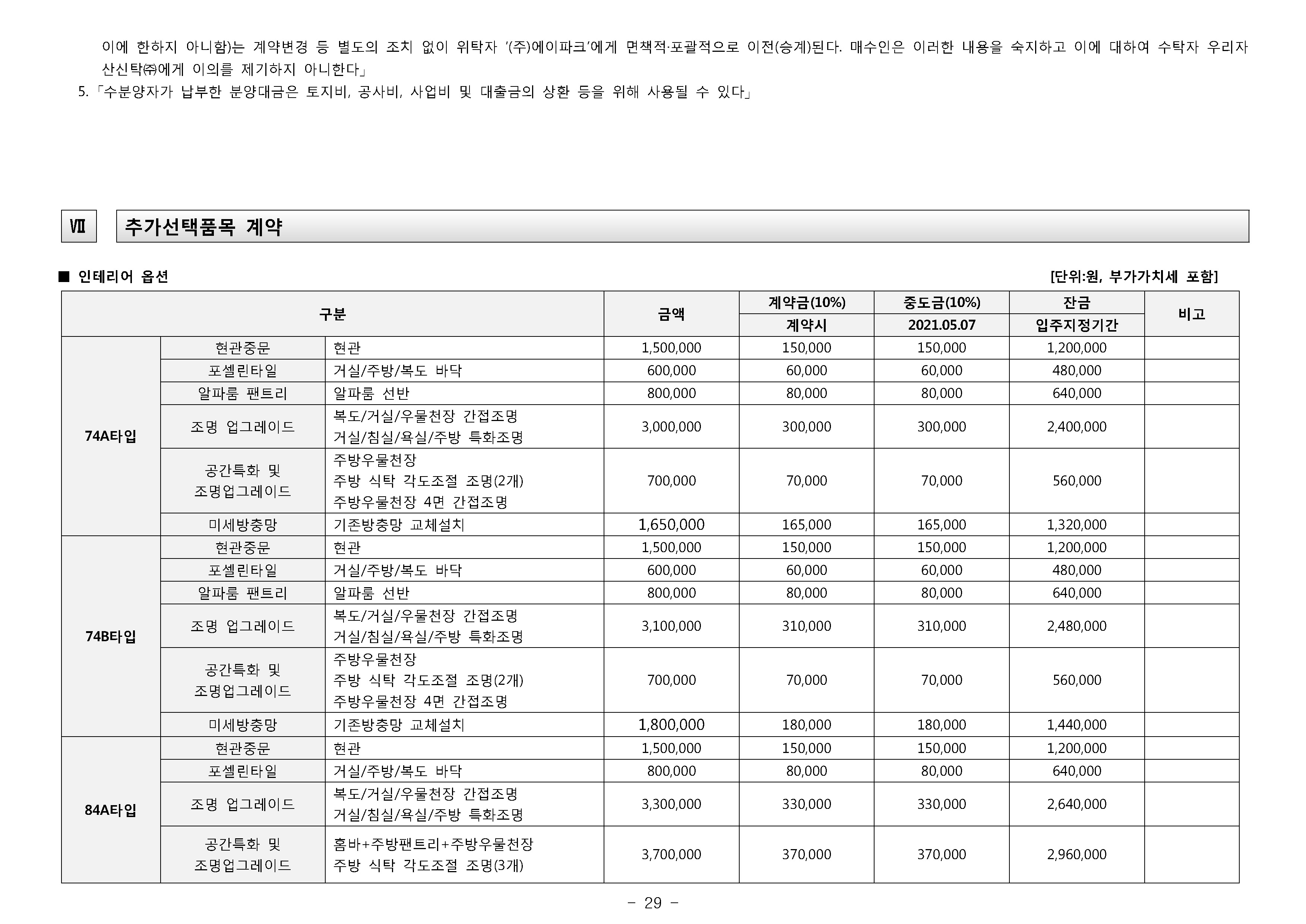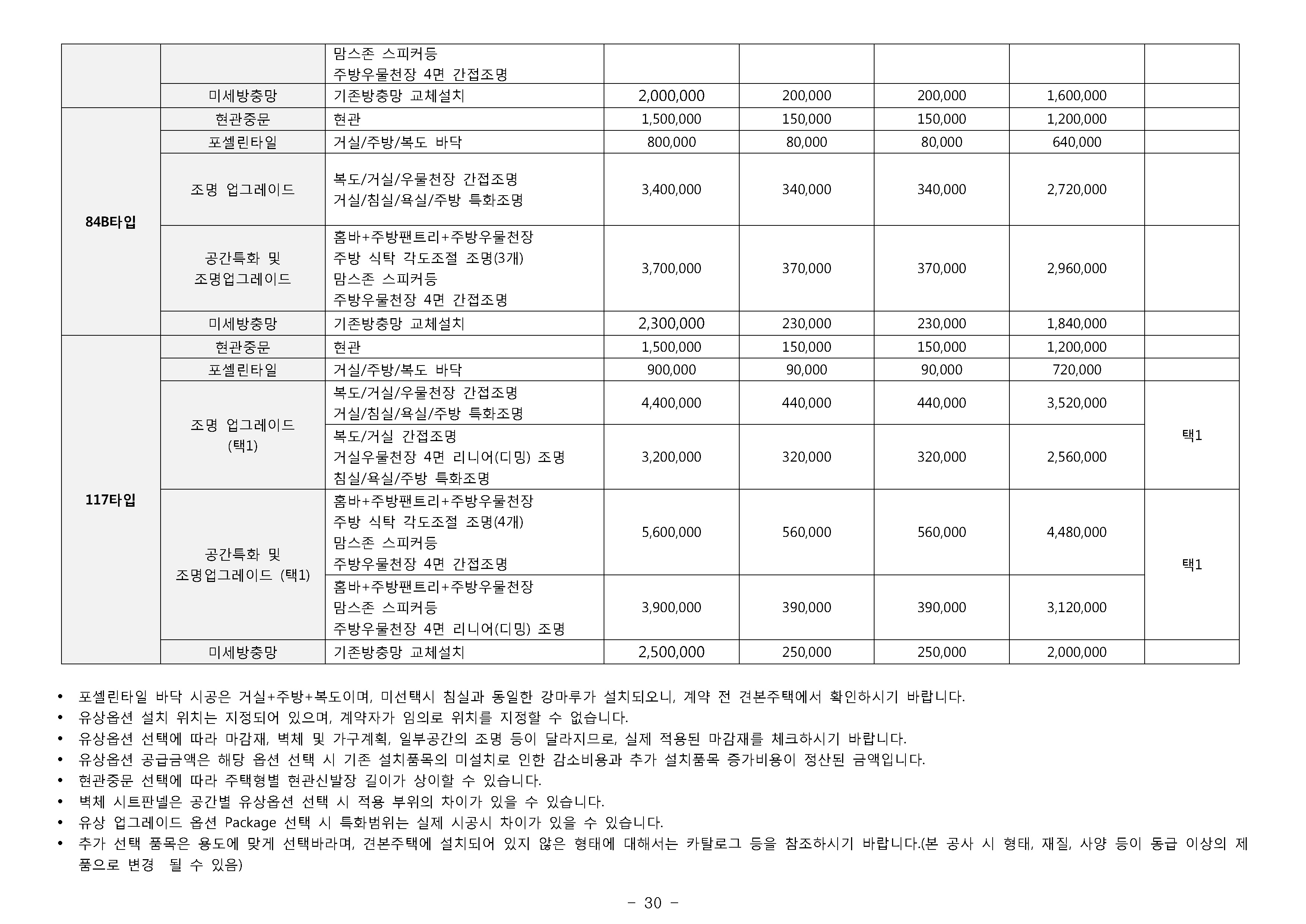 * 85㎡이하 _ 200만원 * 102㎡이하 _ 300만원 * 135㎡이하 _ 400만원 * 모든면적 - 500만원