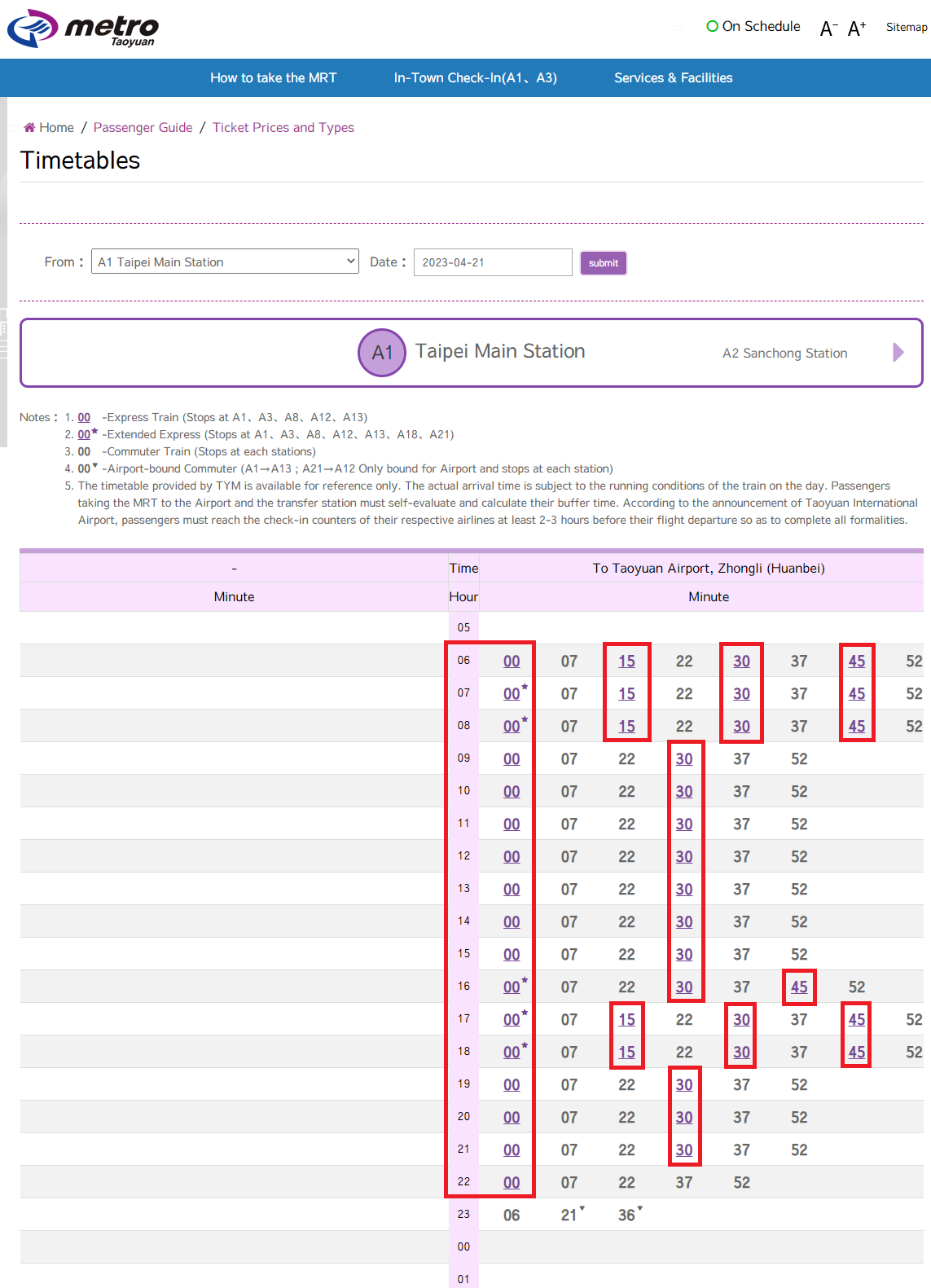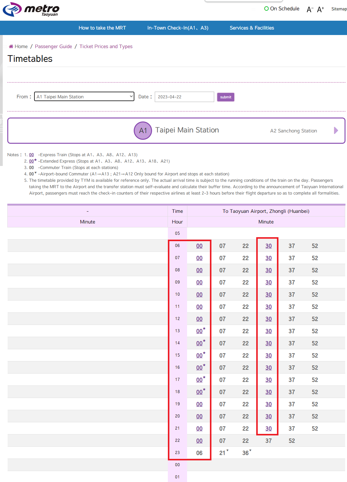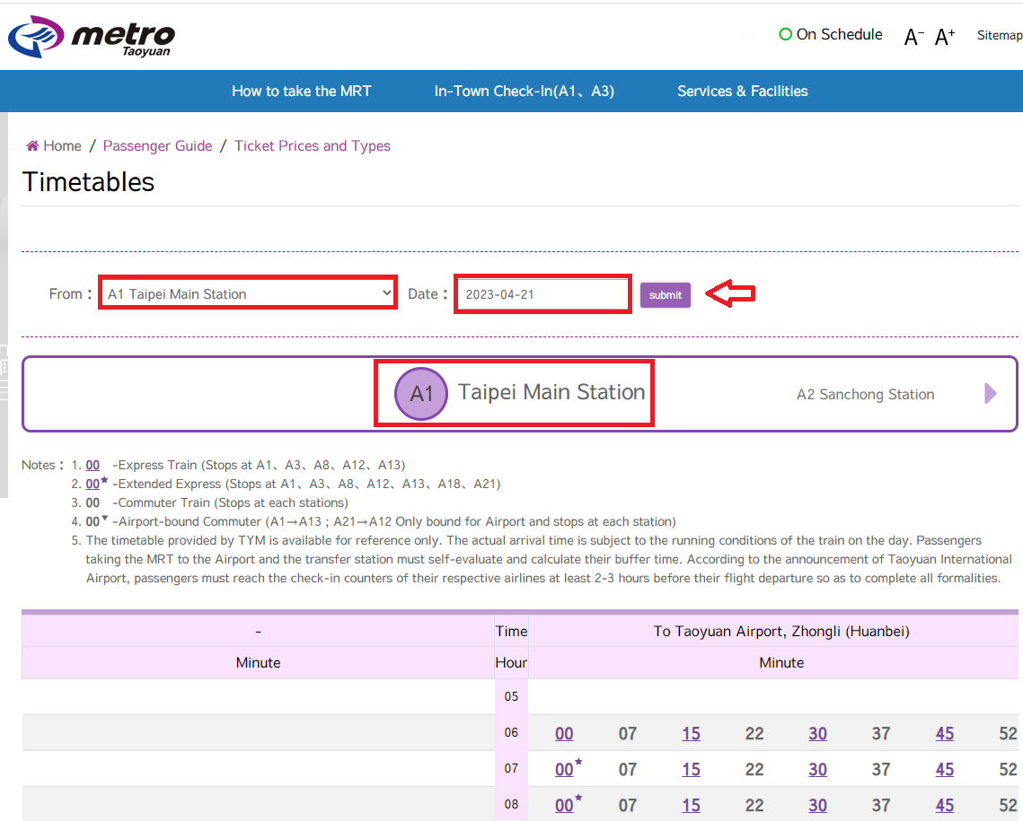 가장 정확한 것은 아래 링크의 타오위안 메트로 공식 사이트에서 조회를 해보세요.