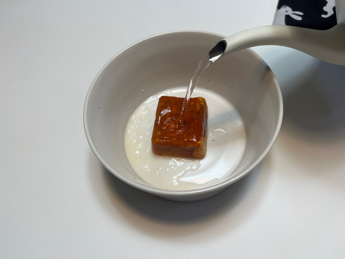 2. 끓인 물 160ml 넣기