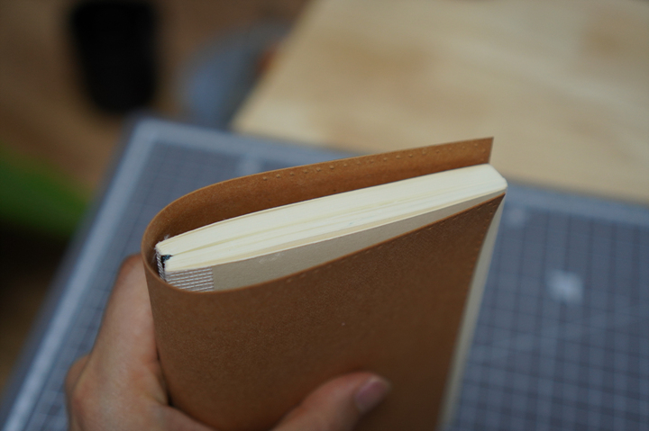 목타 구멍을 내고 미도리 노트에 잠시 대어 보았다. 잘 맞는 것 같다. 완벽한 핏으로 만들어 주어야지.