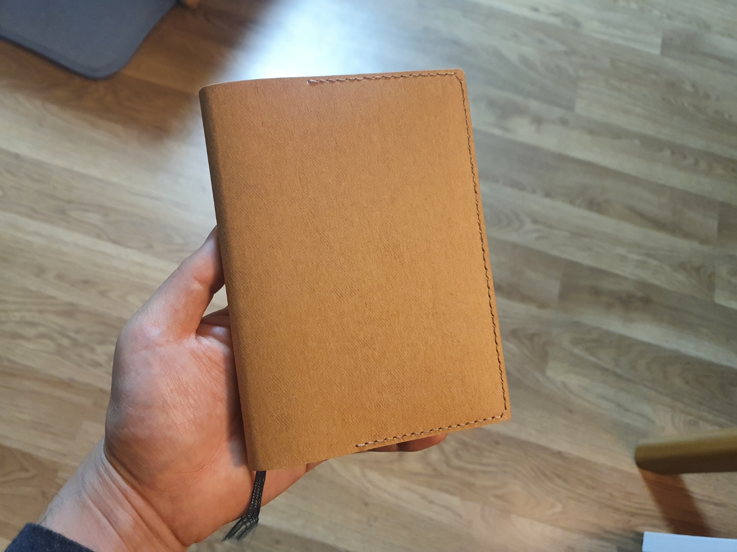 처음에는 이 미도리 노트에 가죽커버를 만들어 주었다. 공방에서 배운 실력으로 한 땀 한 땀 만들었는데 1년 정도 쓰다 보니 좀 변화가 필요하다고 느껴서 커버를 바꾸기로 했다.