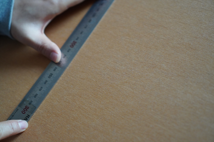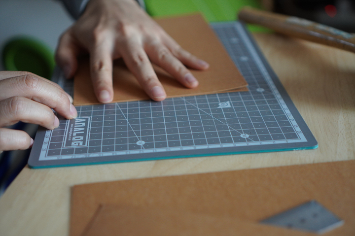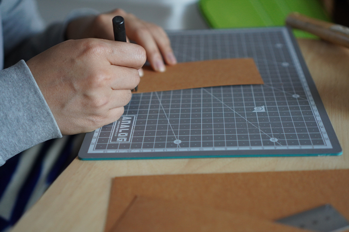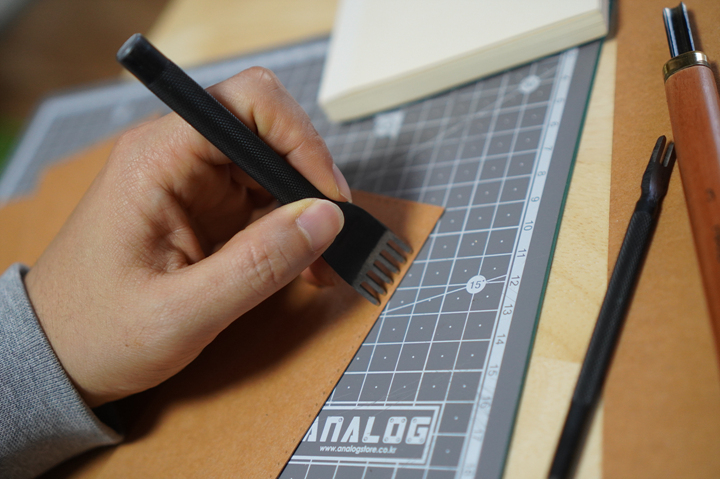 원래 가죽 공예할 때는 마분지 같은 것을 미리 재단하고 그것을 가죽 위에 덧대어서 컷팅을 했는데,
