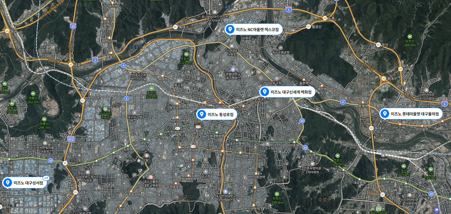 대구에 미즈노 매장은 성서점, 동성로점, NC아울렛 엑스코점, 대구신세계백화점, 롯데아울렛율하점 이렇게 5군데 정도가 있었다. 동성로가 아무래도 신상이 많을 것 같아서 동성로에 갔었다.