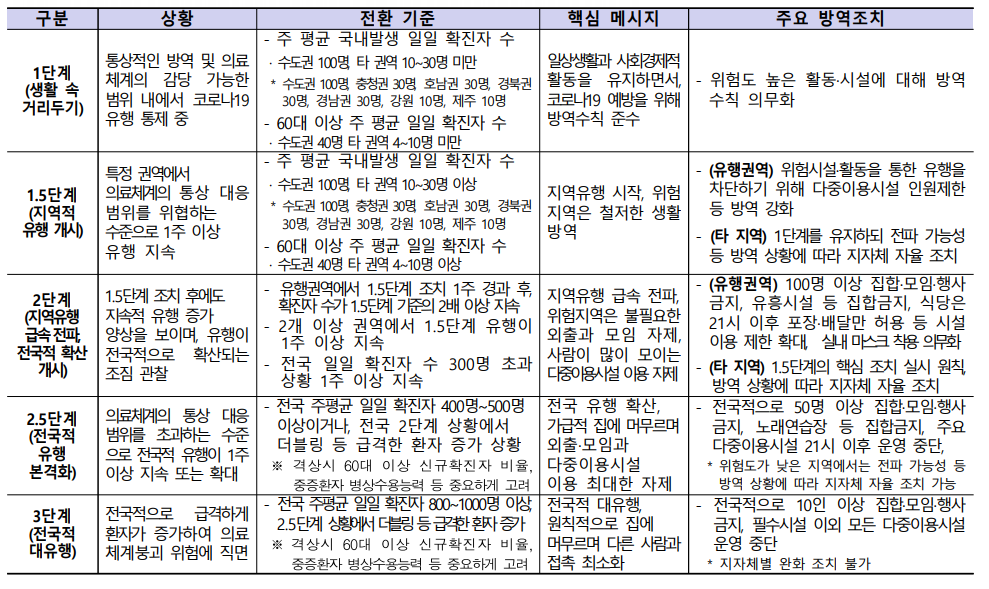 □ 종교활동에 대해서는 다음과 같은 단계별 방역 강화 조치를 원칙으로 하되, 단계 조정 시 방역 및 집단감염 상황에 따라 종교계와 협의하여 구체적 조치 내용 및 대상을 결정한다.