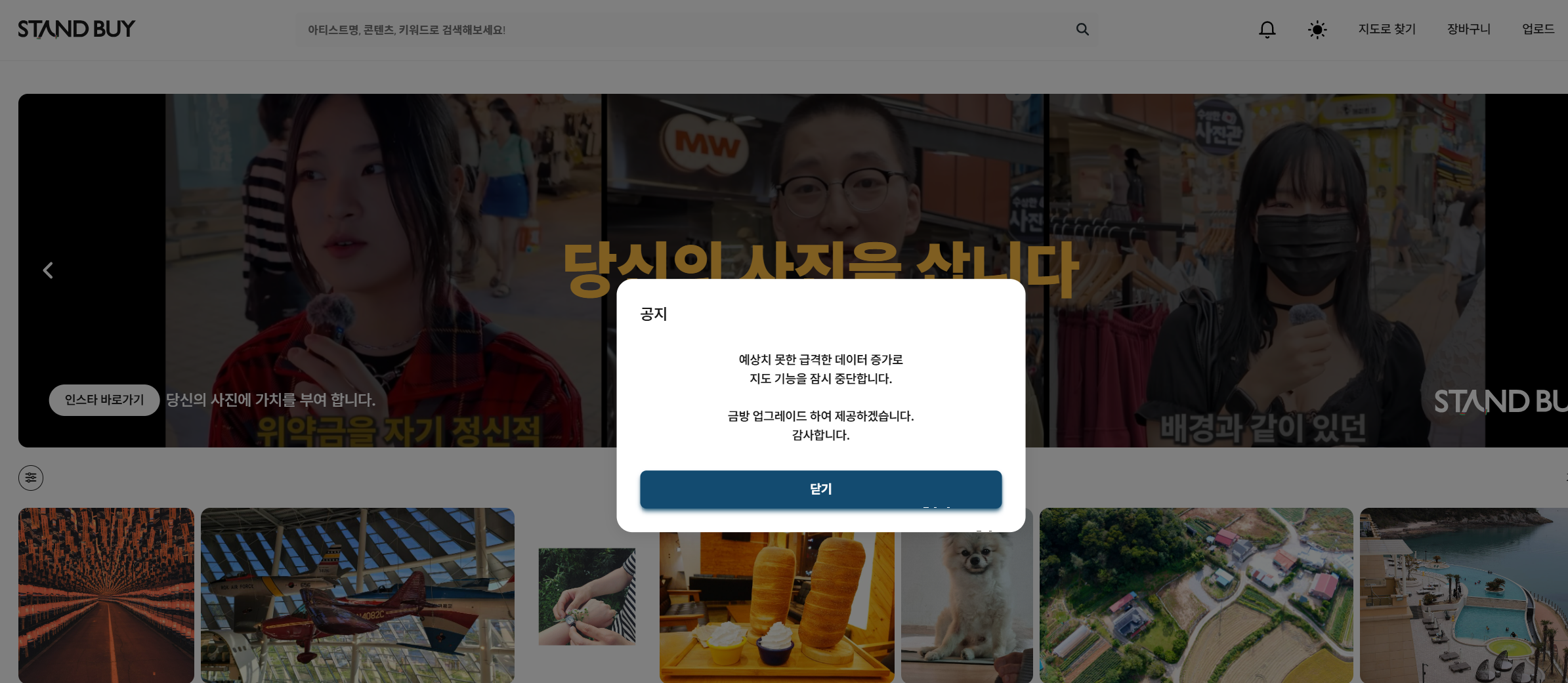 스탠바이는 위치기반으로 사진을 검색 할 수 있다. 만약 경주 보문단지의 사진이 필요하면 단어 검색으로도 되지만 지도 기반으로 위치에 따른 사진 검색이 가능한게 특이점이다.
