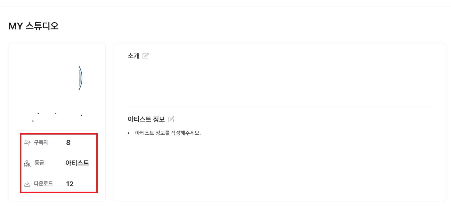 업로드 시작한지 1주일째이고 현재 구독자난 8명, 다운로드는 12회 발생했다.