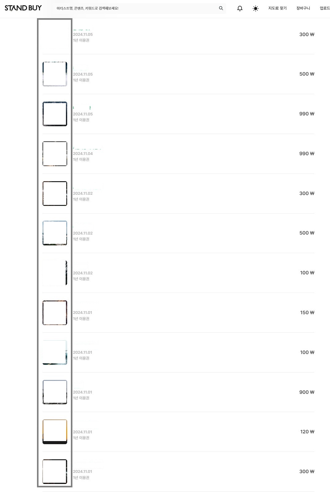 판매한 사진과 제목은 자체 블라인드 처리했다.