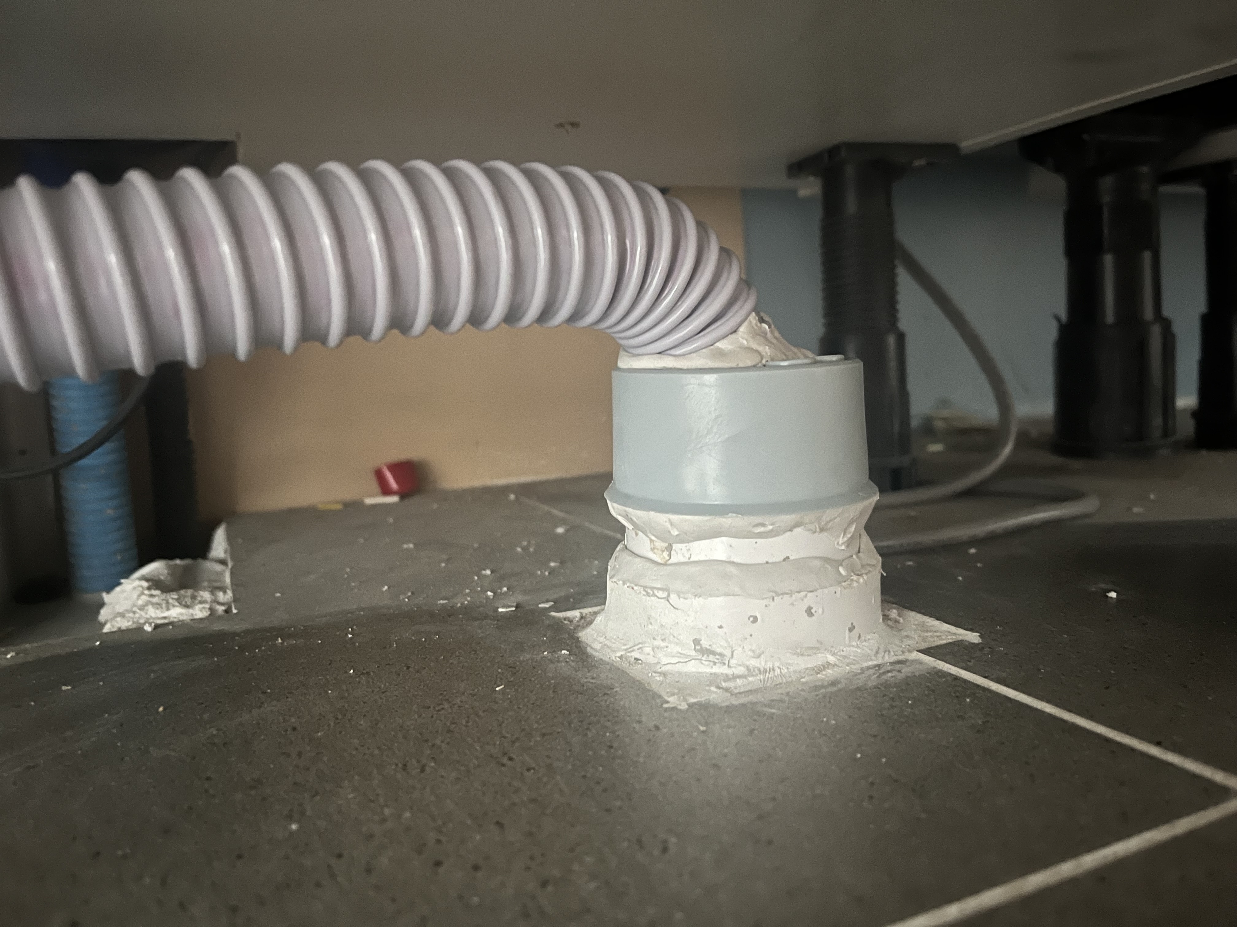 그러다 문득 '혹시 하수관 자체에 문제가 있는 게 아닐까?'라는 생각이 들었습니다. 싱크대 아래쪽 바닥을 면밀히 살펴보던 중, 배수관과 바닥 사이에 아주 미세한 틈이 있는 것을 발견하게 되었습니다. 육안으로는 거의 보이지 않을 정도였지만, 그 틈새를 통해 하수구 냄새가 새어나오고 있었던 것입니다. 이렇게 작은 틈에서 이런 큰 악취가 날 줄이야!