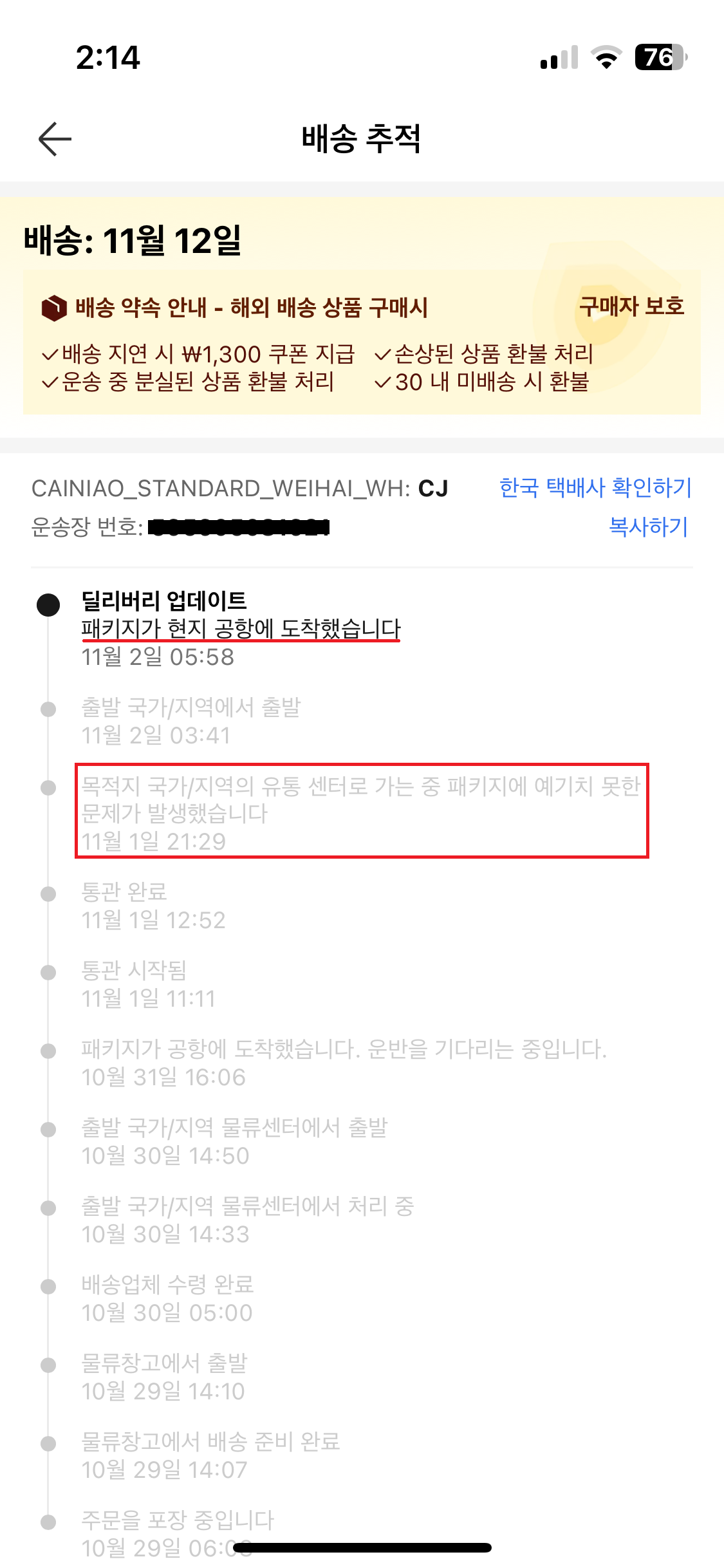 처음 보는 메시지에 당황스러웠습니다. 알리익스프레스를 통해 수많은 해외 직구를 해왔지만, 이런 알림은 처음이었기 때문입니다. ‘배송 중 문제가 생긴 걸까? 아니면 반송될까?’라는 불안감이 스쳐 지나갔습니다.