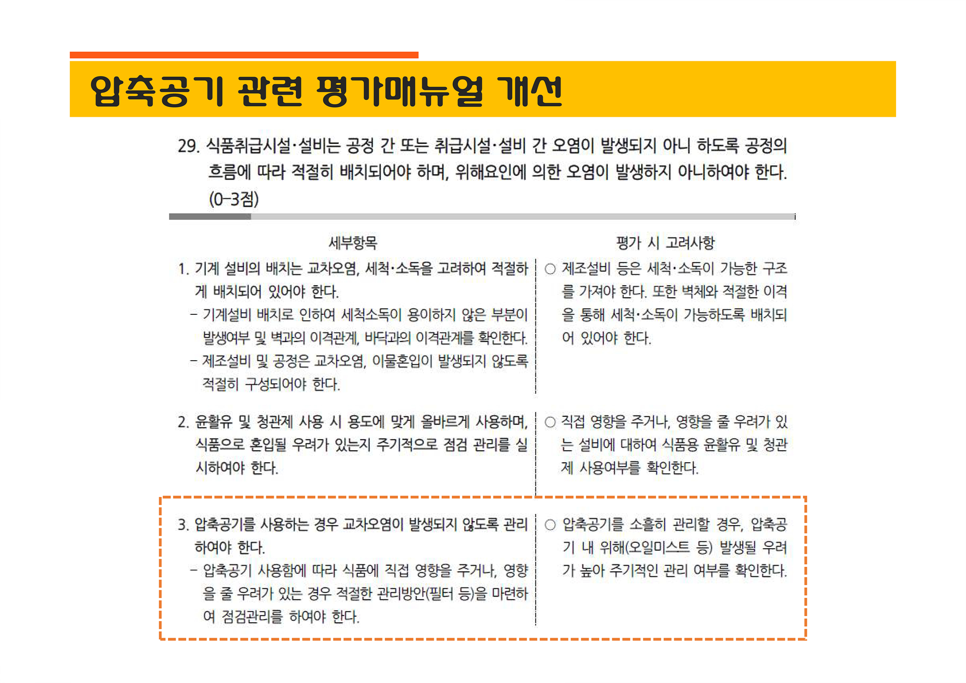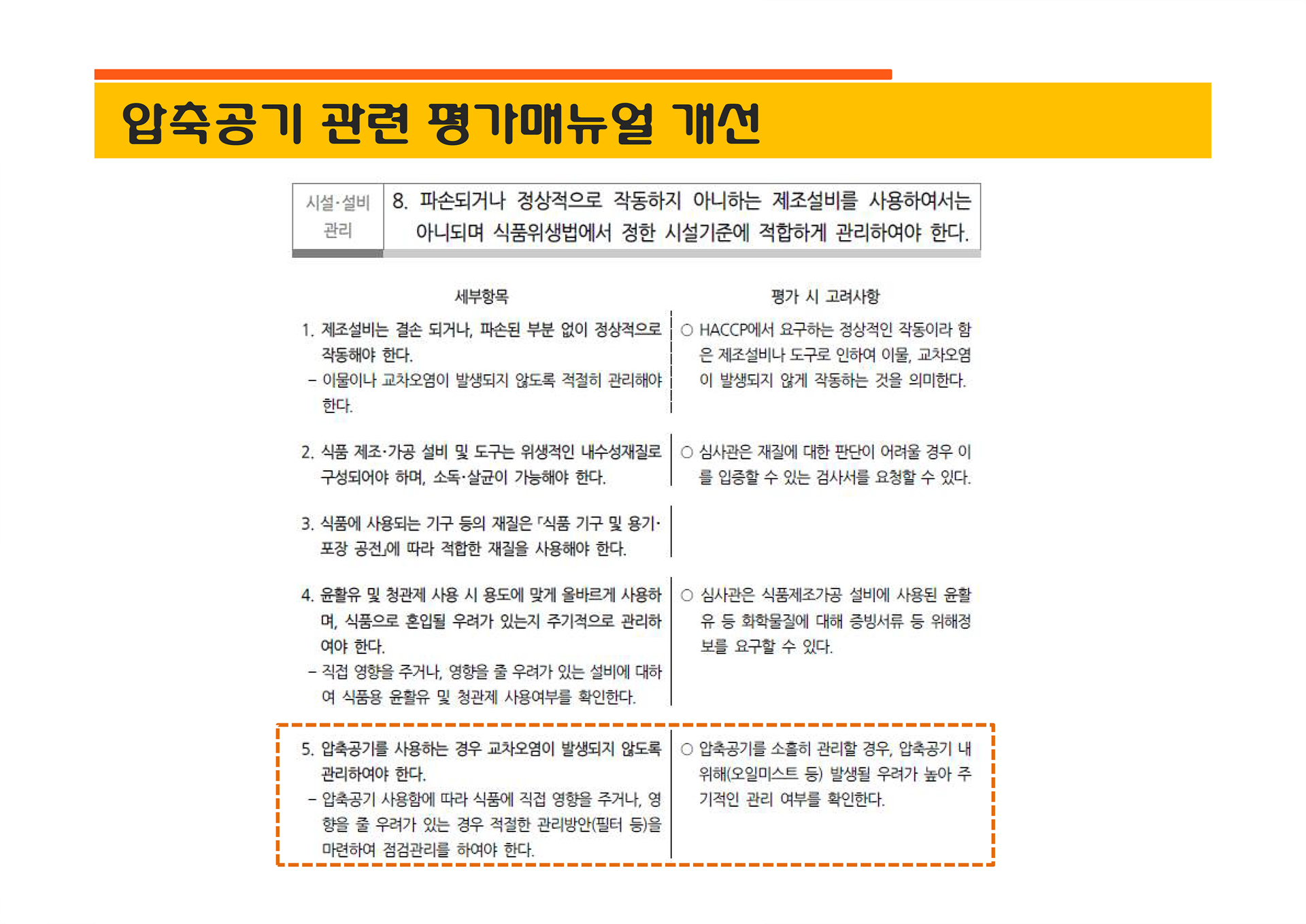압축공기 관련 HACCP 평가항목