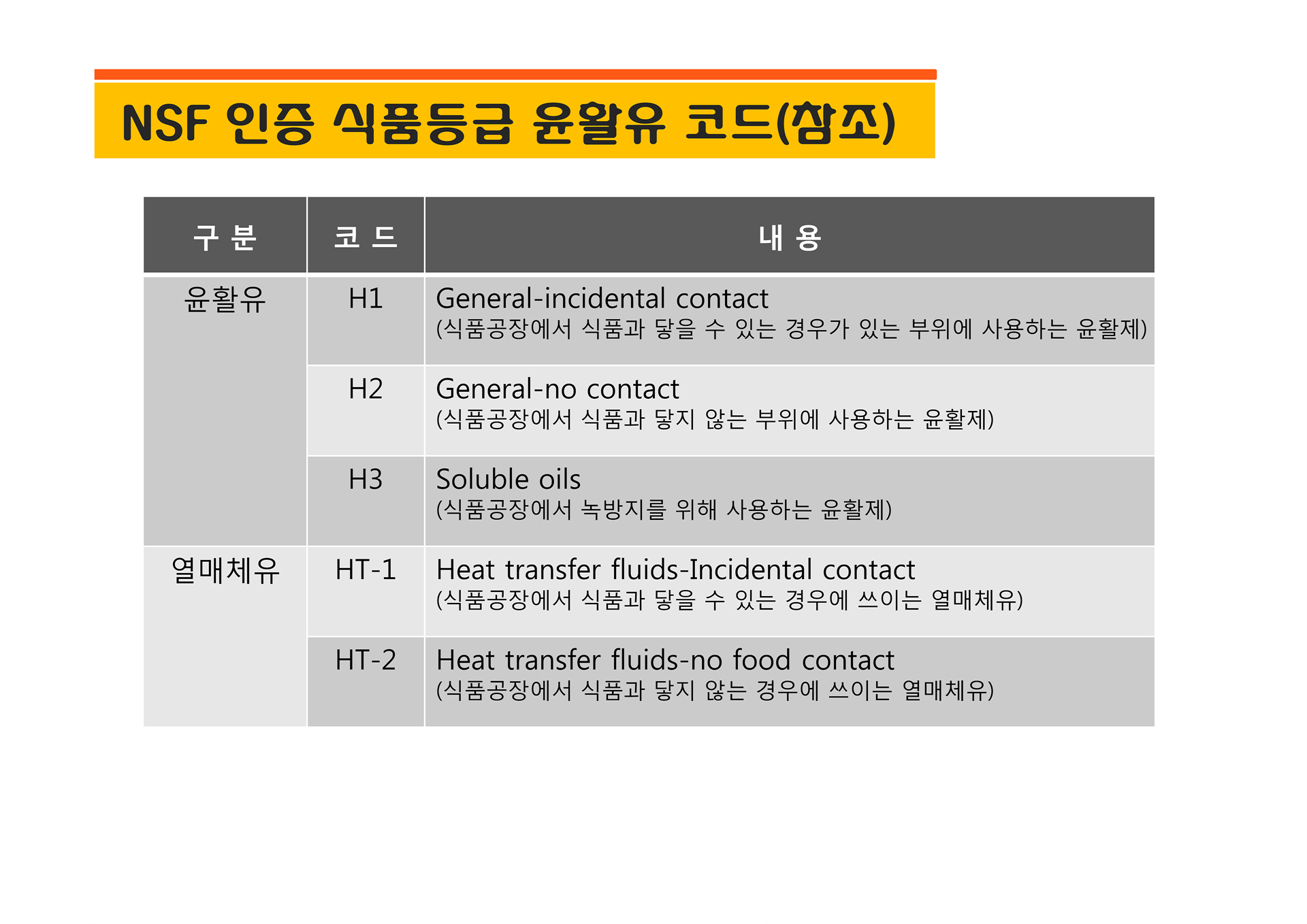 - 식품 등급 윤활유 사용