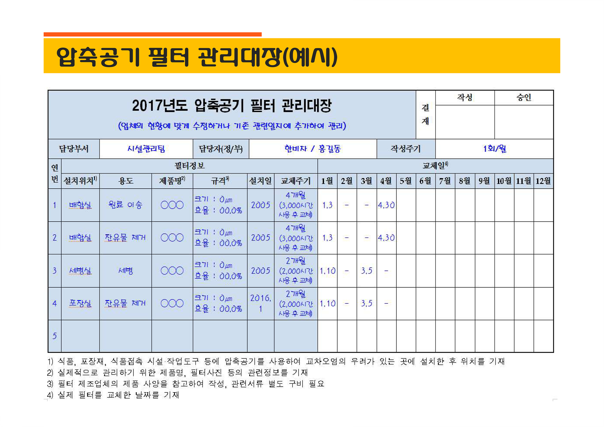 - 오일프리 콤프레셔 도입, 여과필터 설치, 식품 등급 윤활유 사용 등 다양한 관리를 통해 압축공기로 인한 교차오염을