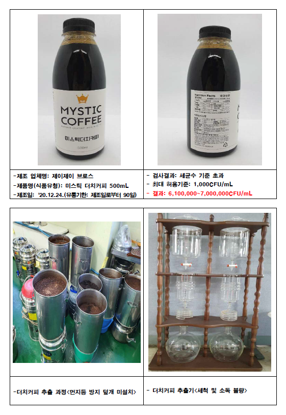 평소에 내가 하루에 두 잔씩 마시는 하이드로 더치 제품이 포함된 건 아닐까 걱정하면서...