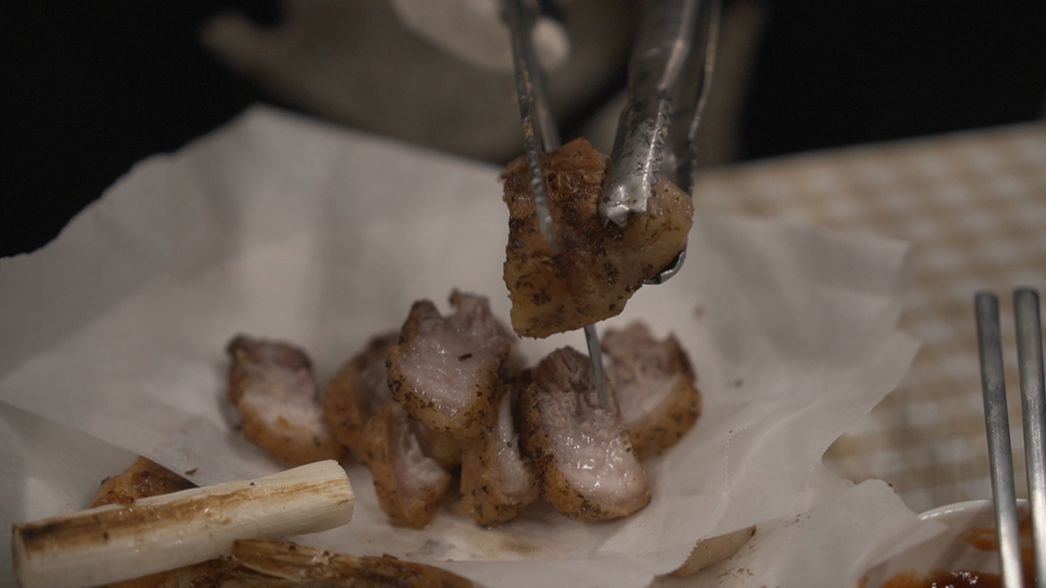 목살은 허브솔트를 너무 많이 뿌려서 맛이 소금 맛이 강했는데, 삼겹살은 다행히 적당히 짠맛이 났다.