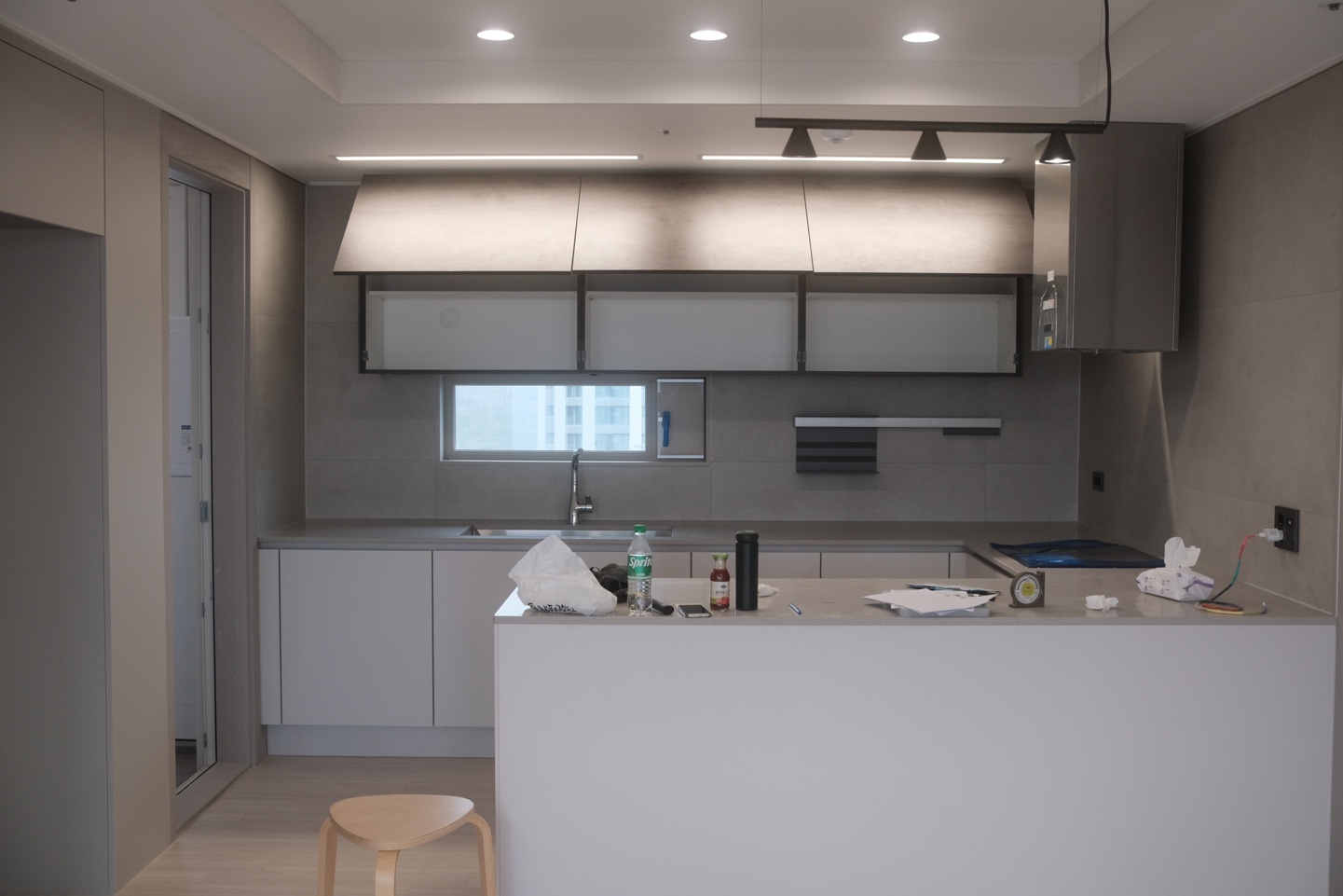 초점이 나갔는데 주방에 조명도 깔끔했어요.