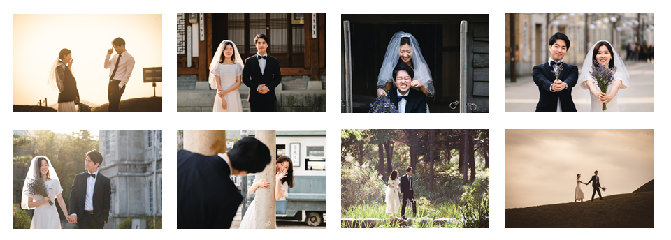 청첩장(모바일 포함) / 식 시작 전 영상 / 예식장 입구에 세워두는 액자용 사진 등에 사용된다.