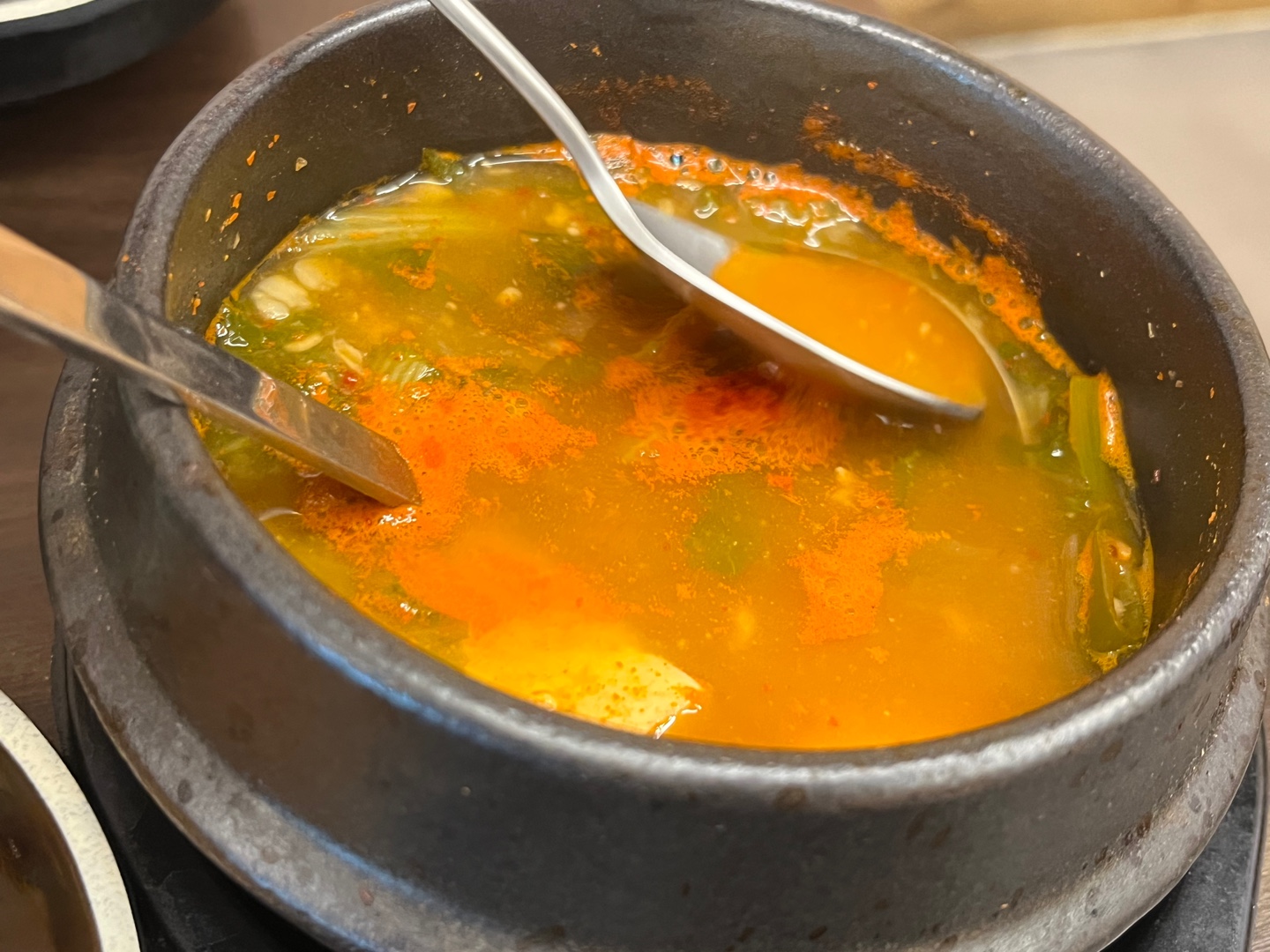 밑반찬은 딱히 좋아하는 반찬이 없어서 조금만 먹었고 된장찌개는 맛있었다. 된장 찌개 냄새가 약간 시골된장같은 구리구리한 냄새가 났고 맛은 아주 맛있었다. 공기밥 추가 요금을 받지 않았고 밥 두그릇은 기본 먹을 수 있을것 같았다.