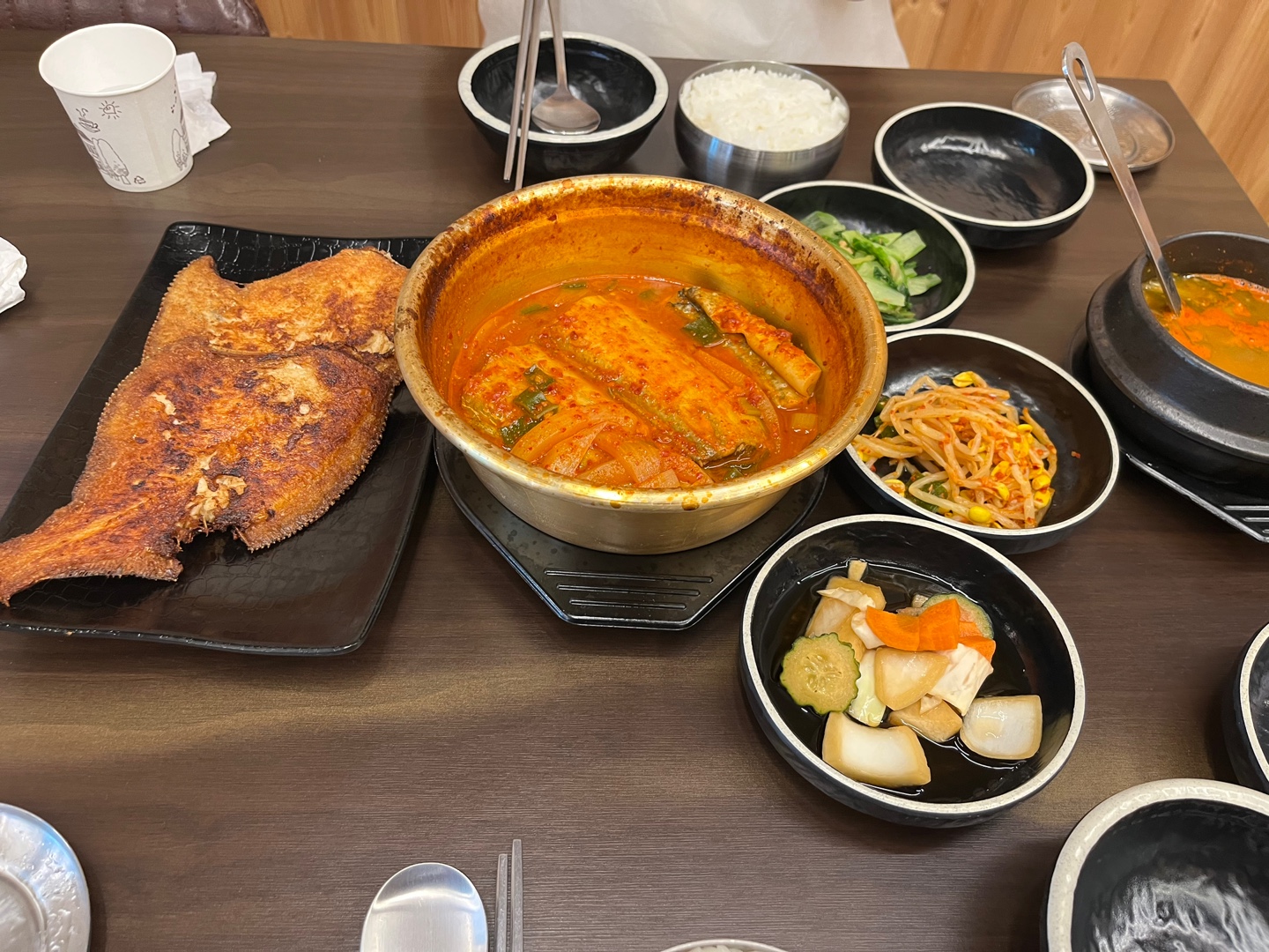 가자미구이와 갈치조림을 시켰다. 고등어 조림도 맛있다고 하는데 난 개인적으로 고등어조림을 좋아하지 않고 갈치조림을 좋아해서 갈치조림을 시켰다. 생선구이는 가자미구이로 선택했다. 그동안 옥산1지구에 생선구이집이 없어서 옥산2지구에 있는 생선구이집에 갔었는데 그곳 대비해서 구이가 조금 덜 짠 맛이라서 좋았다.