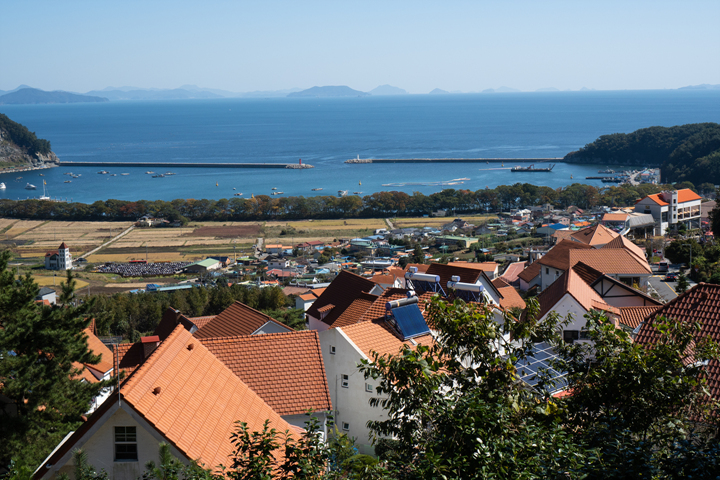 좀 더 높은 곳으로 올라가니 바다가 보이는 뷰가 나옴.