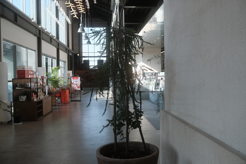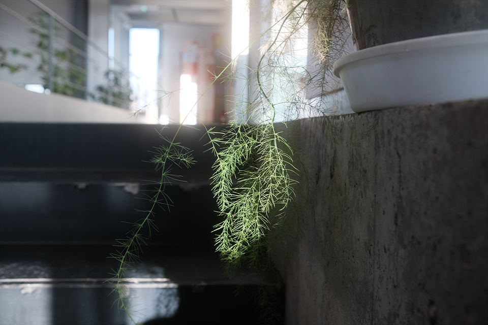 2층 역시 식물들이 보이고 옆에는 조명이 있어요