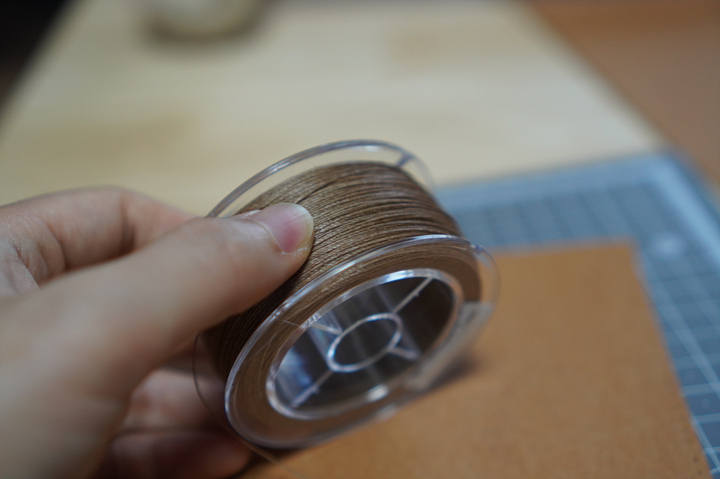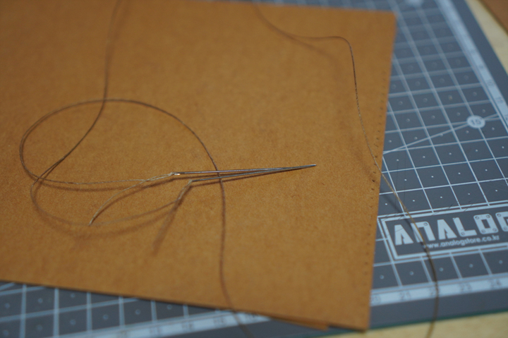 실은 왁스가 발라져 있는 제품을 사용했다. 좀 더 연한 색상의 실을 사용하려고 했으나, 실이 모자라서 어쩔 수 없이 약간 진한 색상의 실을 선택했다.
