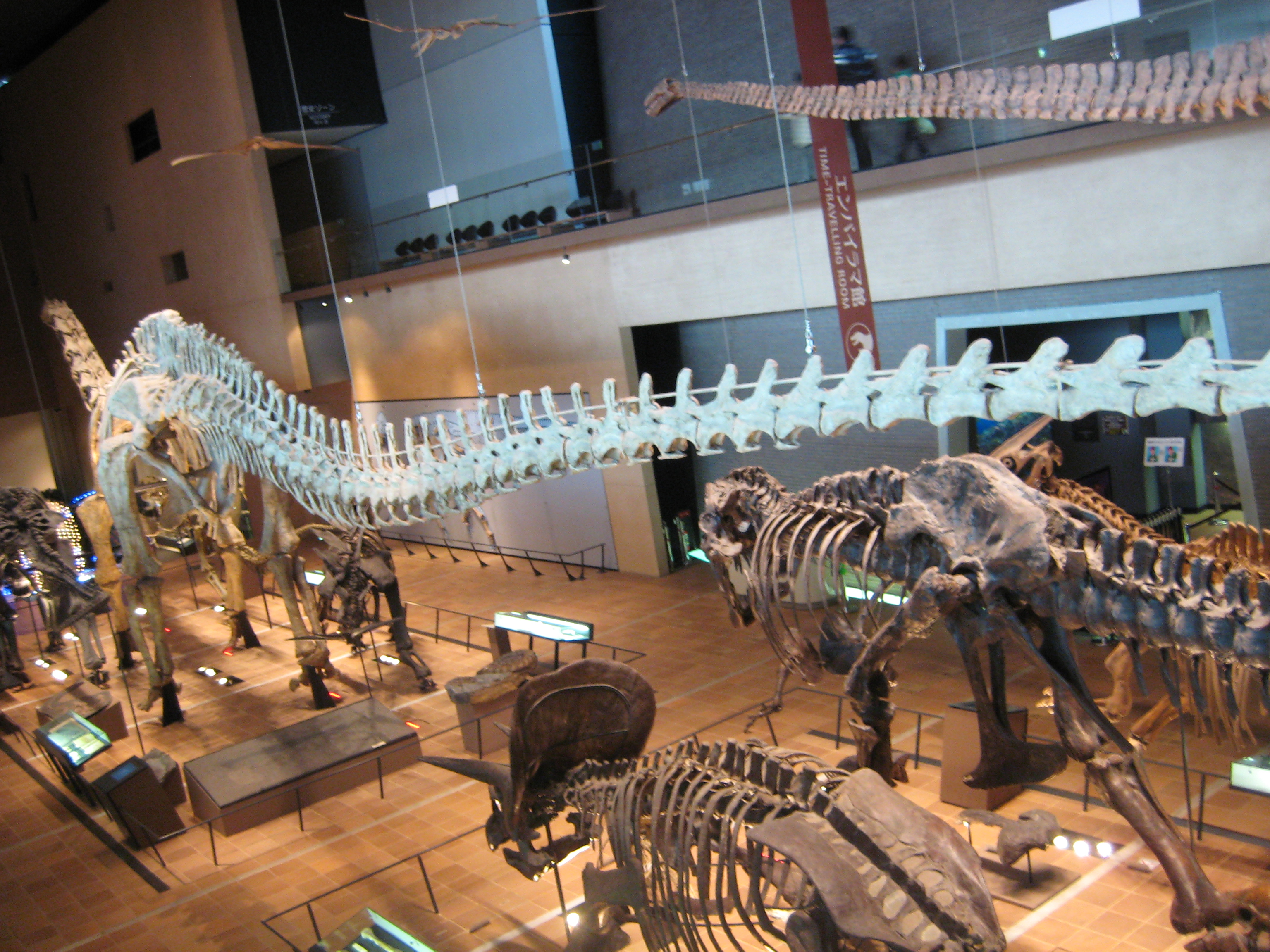 박물관에 들어서면 가장 먼저 눈길을 사로잡는 것은 압도적인 공룡 화석 전시입니다. 마치 실물 크기의 공룡들이 살아 숨 쉬는 듯한 전시 공간은 아이들과 함께하는 가족 여행객들에게도 대단한 인기를 끌지요. 이곳의 공룡들은 단순한 볼거리가 아니라, 과학적 발견과 연구를 바탕으로 한 정밀한 재현물입니다. 각종 화석과 자연사에 대한 해설이 일본어뿐만 아니라 영어로도 제공되어, 해외 여행객들에게도 문턱이 낮습니다.