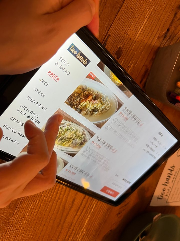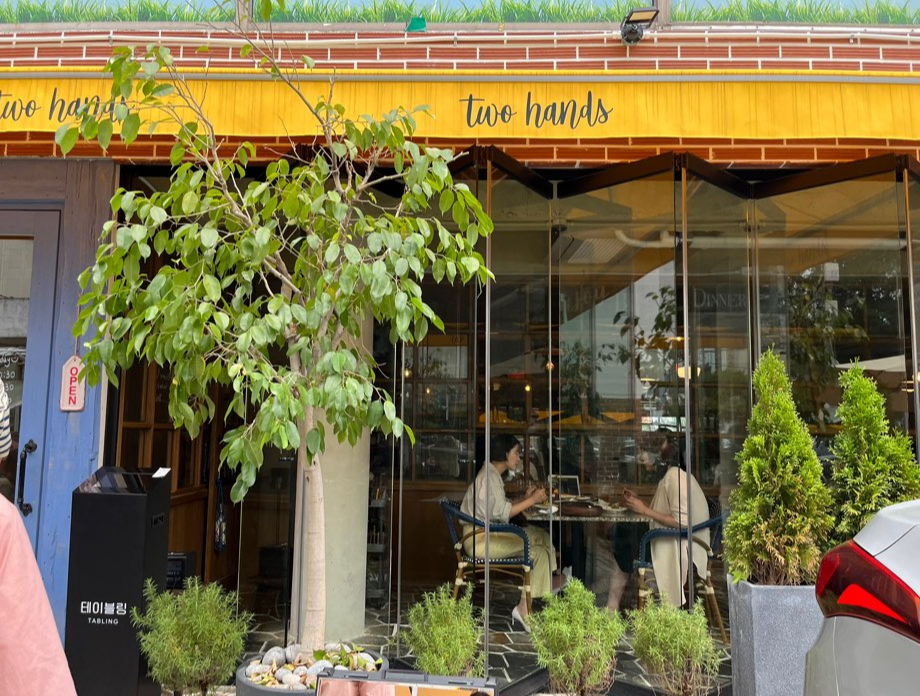 가족들끼리 점심을 먹기 위해서 창원 가로수길의 투핸즈로 갔다. 주차 공간은 식당 앞에 4자리 정도가 있었다. 마침 도착했을 때 차가 한대 나가면서 한자리가 비어서 운 좋게 주차를 했다. 자리가 없을 때는 경남도민의집 입구쪽에 주차하거나 창원문화원에 주차하는 사람들도 있었다.