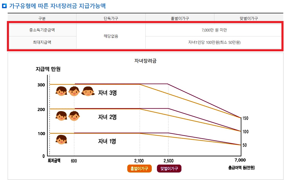 자녀장려금 소득 및 재산 요건
